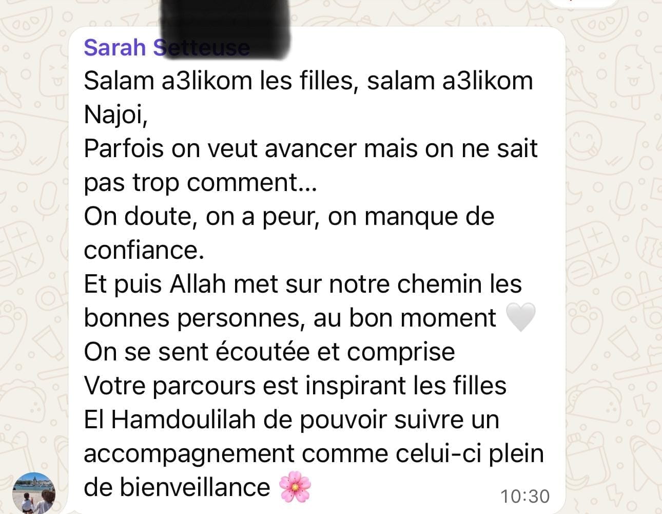 ✨ Une communauté bienveillante et soudée, où tu es entourée de femmes qui partagent ta foi, tes valeurs et tes aspirations.
